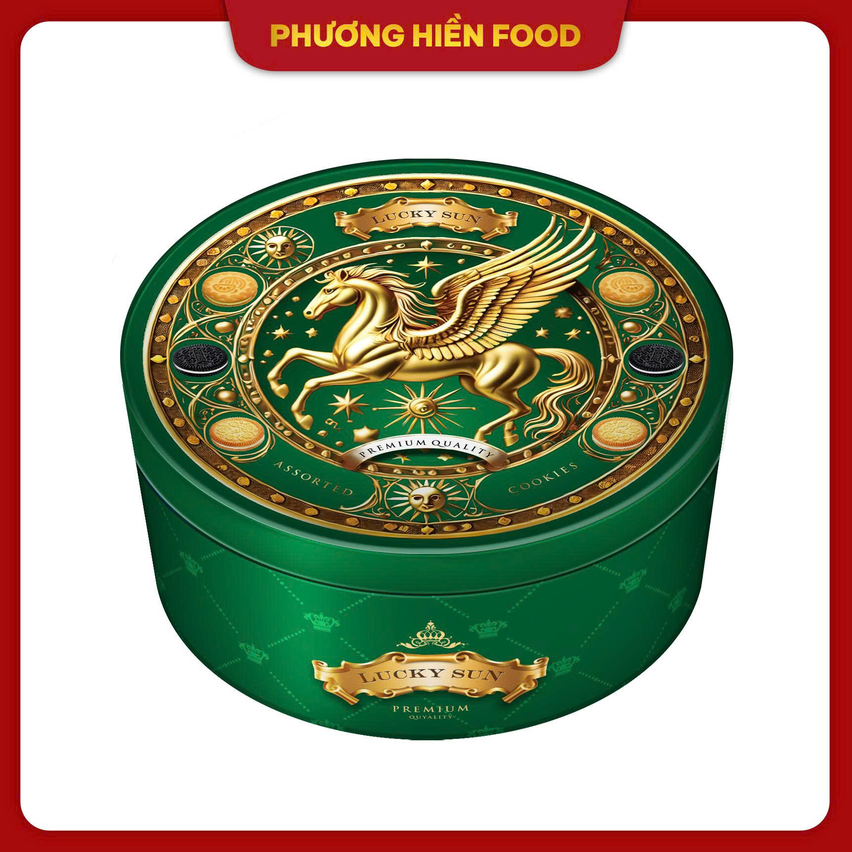 Sản phẩm được đóng gói trong hộp thiếc 110g tinh tế, mang họa tiết hình ngựa – biểu tượng của sự may mắn, sức mạnh và thịnh vượng. Không chỉ là món bánh ăn vặt hằng ngày, Luckysun còn là món quà ý nghĩa dành tặng gia đình, bạn bè, đồng nghiệp trong những dịp đặc biệt.