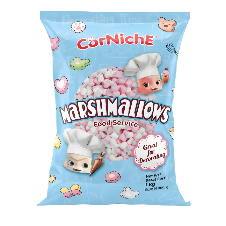 Tên sản phẩm:Kẹo dẻo Marshmallows (trắng + hồng) hiệu CorNiche 1kg