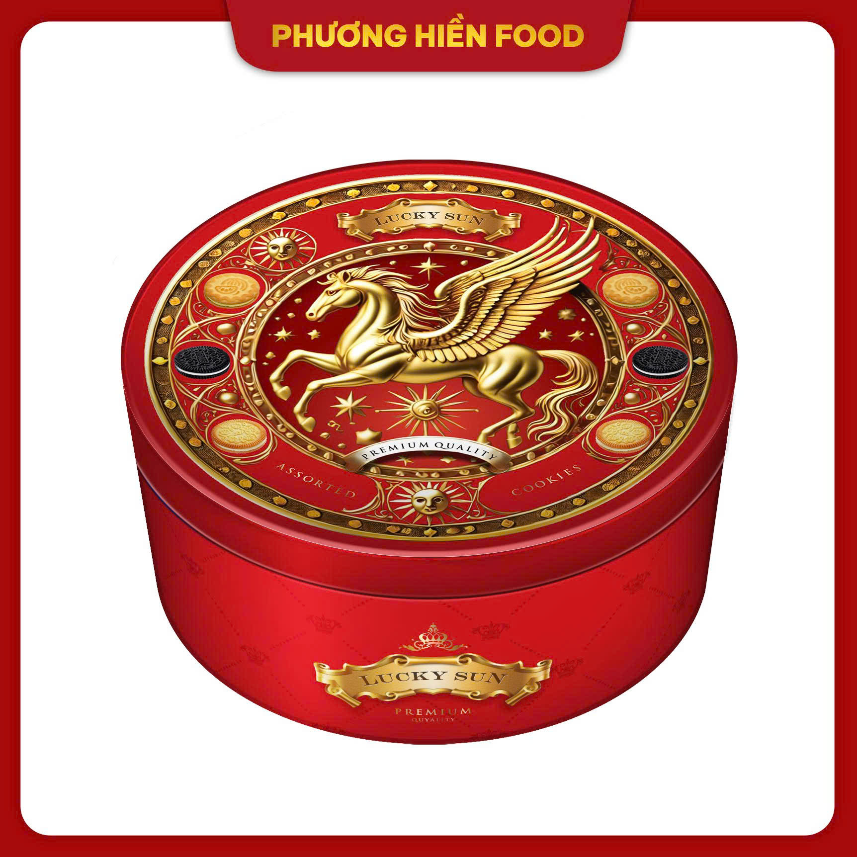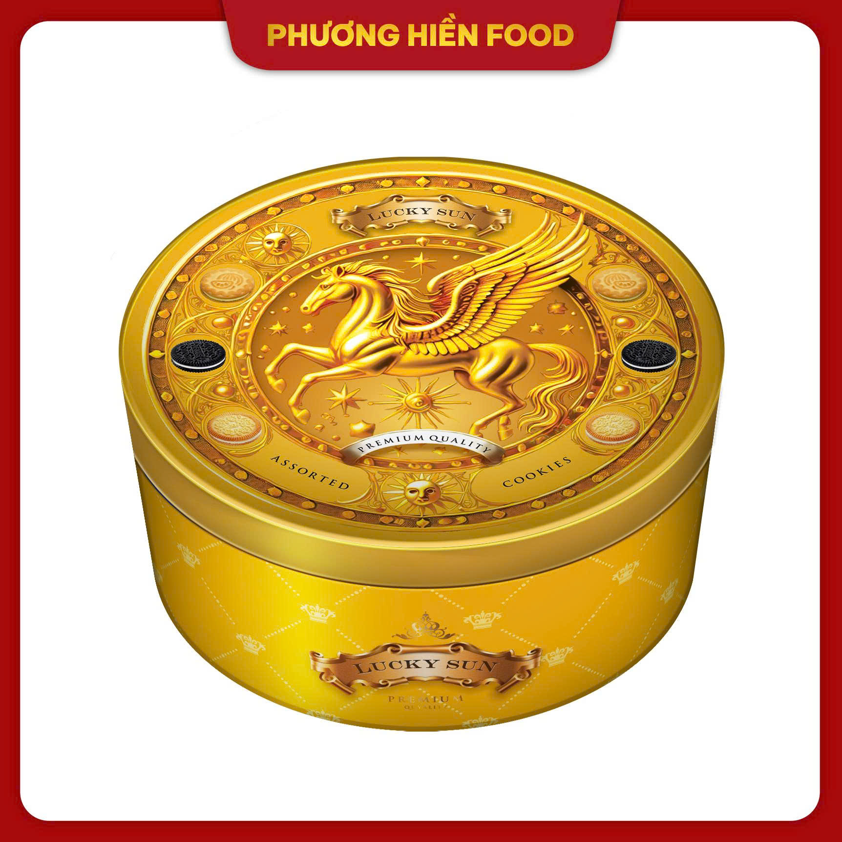 Sản phẩm được đóng gói trong hộp thiếc 110g tinh tế, mang họa tiết hình ngựa – biểu tượng của sự may mắn, sức mạnh và thịnh vượng. Không chỉ là món bánh ăn vặt hằng ngày, Luckysun còn là món quà ý nghĩa dành tặng gia đình, bạn bè, đồng nghiệp trong những dịp đặc biệt.