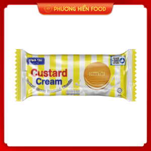 Bánh quy kem sữa/trứng hiệu Hwa Tai – sản phẩm bánh quy giòn với lớp kem vị sữa hoặc trứng thơm béo, gói nhỏ 100g tiện lợi, dễ mang theo hoặc dùng làm snack nhẹ. Hwa Tai là thương hiệu bánh quy nổi tiếng của Malaysia, có mặt trên nhiều thị trường quốc tế.
